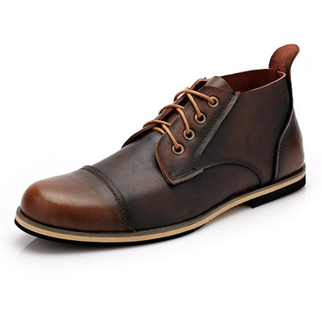 Hommes Bottes de Mode Hautes Plates Décontractées Extérieures en Cuir à Lacets