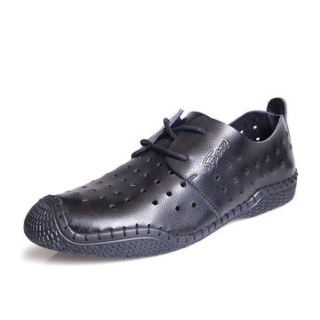 Hommes chaussures en cuir évider occasionnels de la mode respirante en plein air chaussures oxfords plates