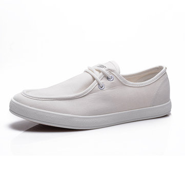 Lacets en toile pur couleur bout rond baskets plates pour les hommes