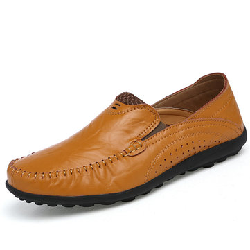 Hommes en cuir respirant casual business en plein air conduite plat flaneurs confortables chaussures