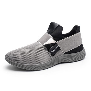 Mens étirer tricot chaussures occasionnelles lastique enfilable plate couture chaussures de sport