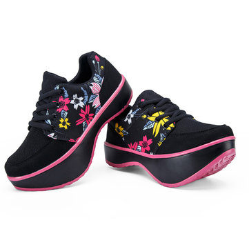 Lacer floral impression rocker chaussures à semelle plate-forme casual chaussures de santé