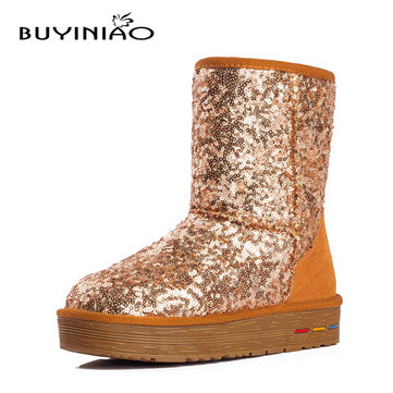 Buyiniao femmes coton d'hiver bottes de neige bottes de fond plat des bottes paillette d'hiver