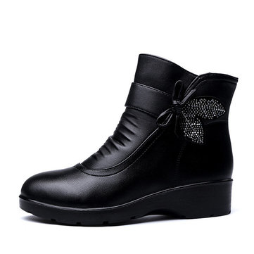 Slip casual sur doublure en coton chaud bout rond bling cheville court bottes