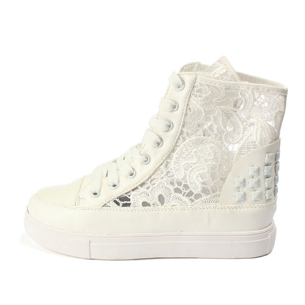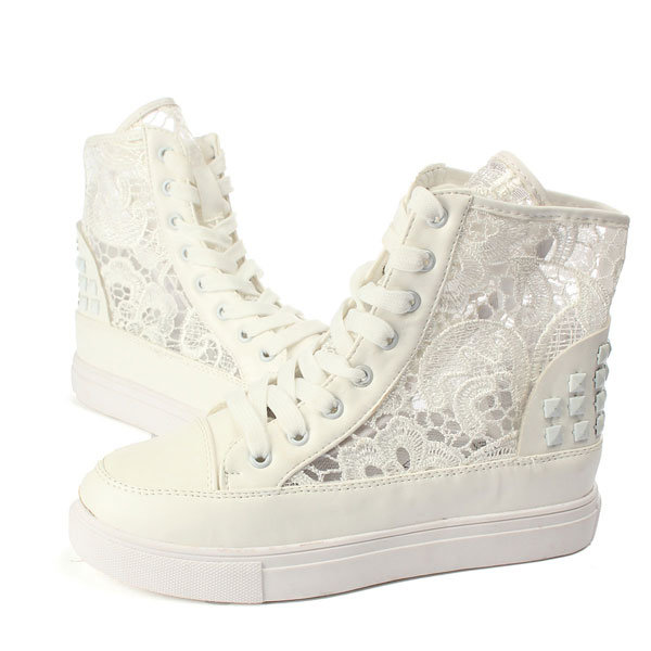 Creuse en dentelle sur les femmes causales baskets chaussures plate-forme de toile
