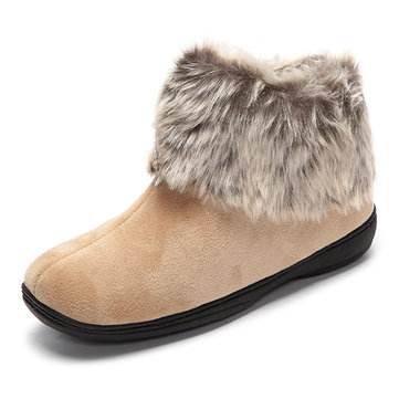 Faux doublure en fourrure de glissement sur bout rond garder des bottes de neige de la cheville au chaud