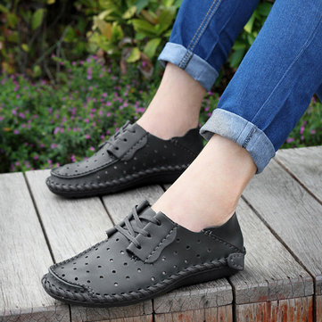 Hommes en cuir souple richelieus creux en respirant lacent chaussures de marche