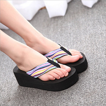 Les femmes roma plate-forme de coins hauts talons tongs pantoufles sandales chaussures de plage