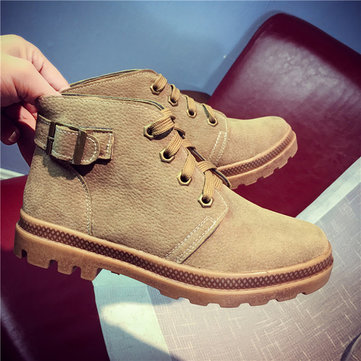 Lacer pliées bottes courtes bout rond plateforme coin de la cheville pour les femmes