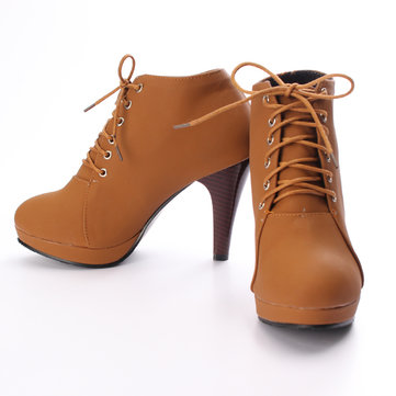 Lacez l'orteil rond les hautes chaussures de stylet de femmes de bottes de cheville de talon
