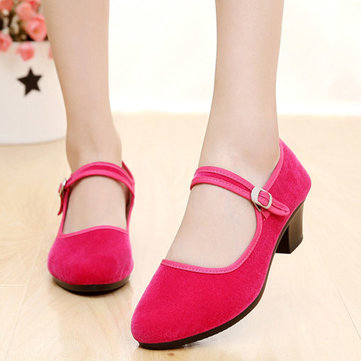 Les femmes en daim semelle souple coin sandales boucle respirante danse sandales