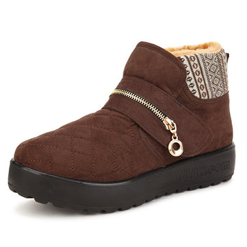 Les femmes hiver chaussures chaudes bout rond bottes plates-formes auto-agrippante bottines courtes