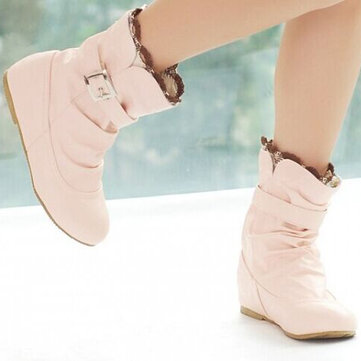 Doublure en laine artificielle fermeture à glissière bout rond cheville neige bottes courtes