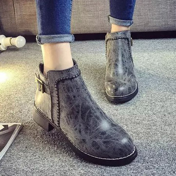 Nouvelles femmes bottes PU talon bas rond mode orteil courtes bottines confortables