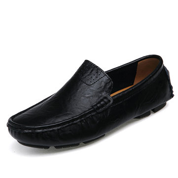 Hommes en cuir respirant casual business en plein air conduite plat flaneurs confortables chaussures